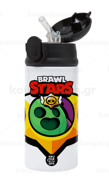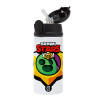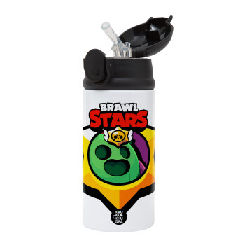 Brawl Stars Spike, Children's hot water bottle, stainless steel, with safety straw, Black (360ml) BPA-FREE
