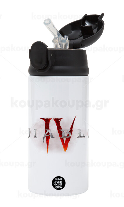 Diablo iv, Children's hot water bottle, stainless steel, with safety straw, Black (360ml) BPA-FREE