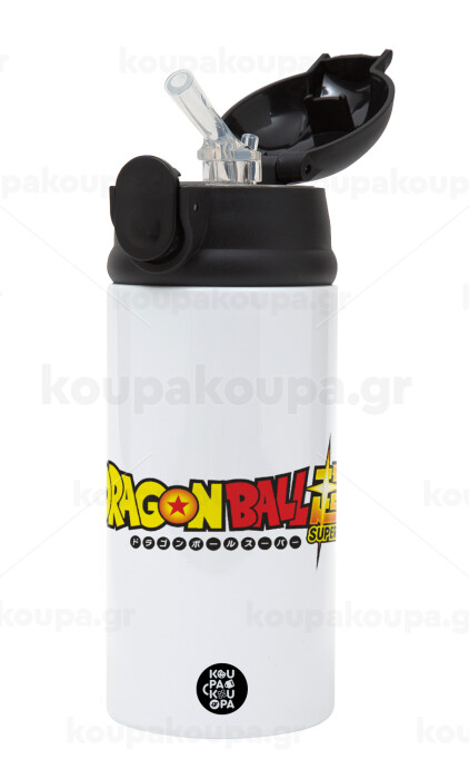 DragonBallZ, Children's hot water bottle, stainless steel, with safety straw, Black (360ml) BPA-FREE