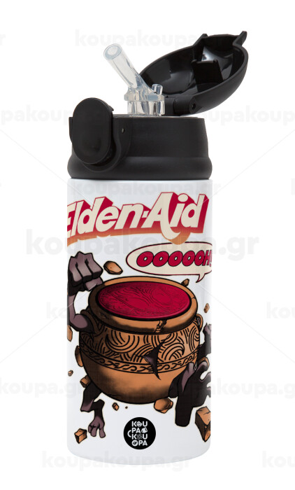 Elden-Aid, Elden Ring inspired , Children's hot water bottle, stainless steel, with safety straw, Black (360ml) BPA-FREE