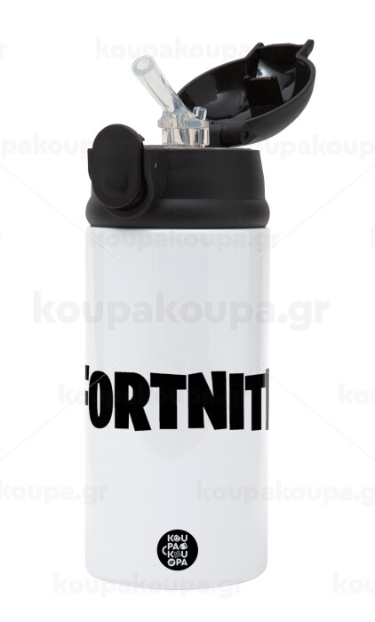 Fortnite landscape, Children's hot water bottle, stainless steel, with safety straw, Black (360ml) BPA-FREE