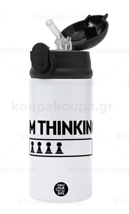 I'm thinking, Children's hot water bottle, stainless steel, with safety straw, Black (360ml) BPA-FREE