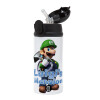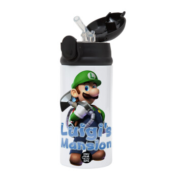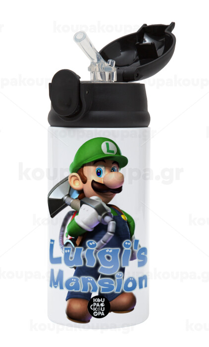 Luigi's Mansion, Children's hot water bottle, stainless steel, with safety straw, Black (360ml) BPA-FREE