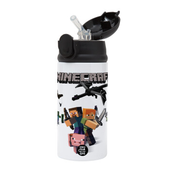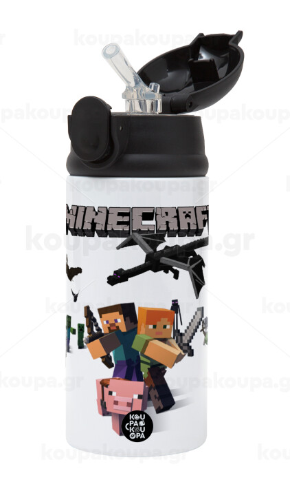 Minecraft Alex, Children's hot water bottle, stainless steel, with safety straw, Black (360ml) BPA-FREE