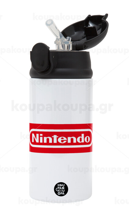 Nintendo, Children's hot water bottle, stainless steel, with safety straw, Black (360ml) BPA-FREE
