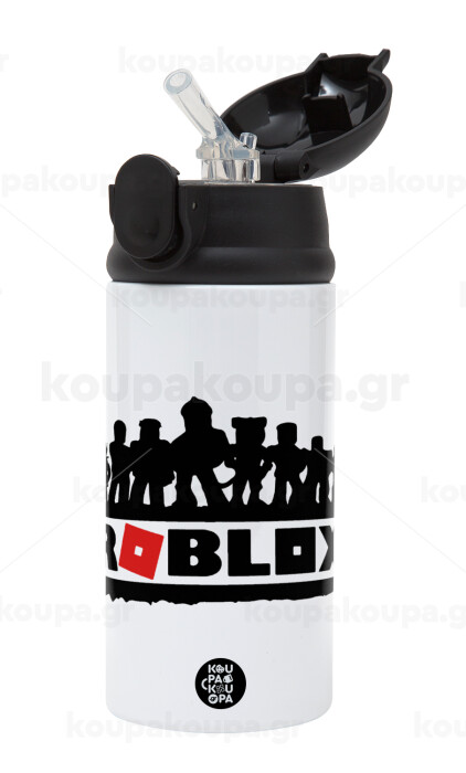 Roblox team, Children's hot water bottle, stainless steel, with safety straw, Black (360ml) BPA-FREE