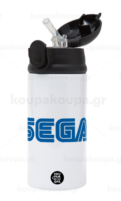 SEGA, Children's hot water bottle, stainless steel, with safety straw, Black (360ml) BPA-FREE