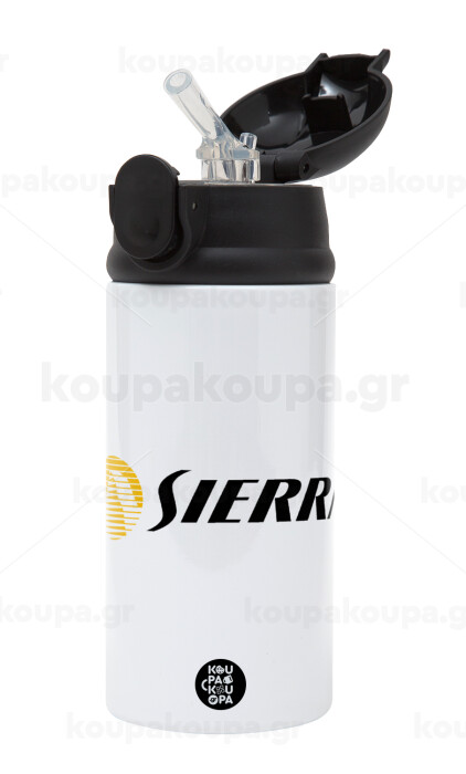 SIERRA, Children's hot water bottle, stainless steel, with safety straw, Black (360ml) BPA-FREE
