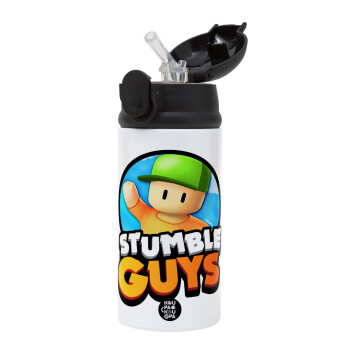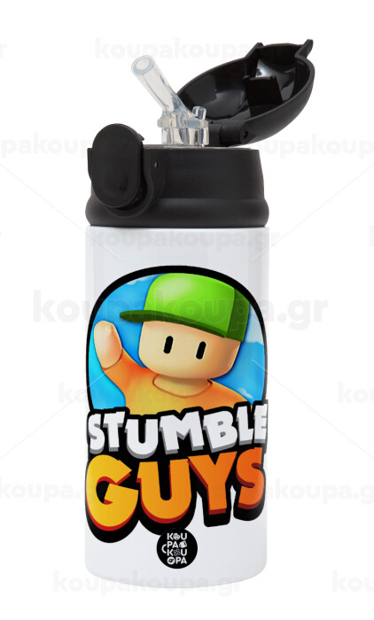 Stumble Guys, Children's hot water bottle, stainless steel, with safety straw, Black (360ml) BPA-FREE