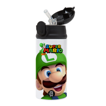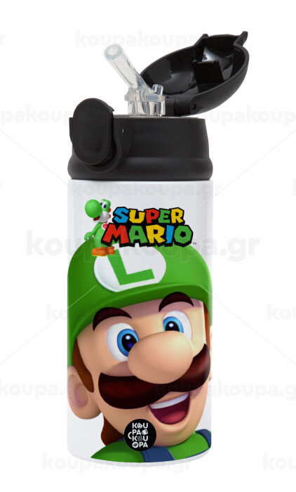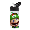Super mario Luigi, Children's hot water bottle, stainless steel, with safety straw, Black (360ml) BPA-FREE