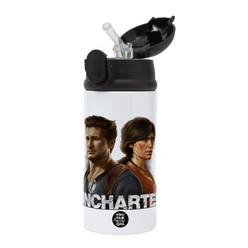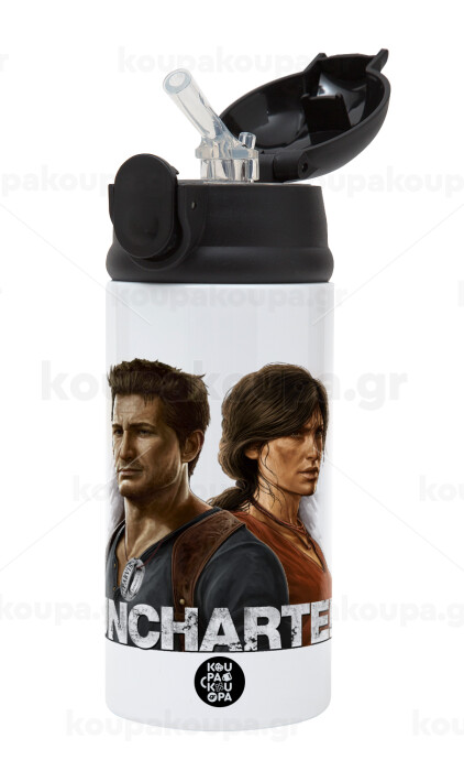 Uncharted, Children's hot water bottle, stainless steel, with safety straw, Black (360ml) BPA-FREE