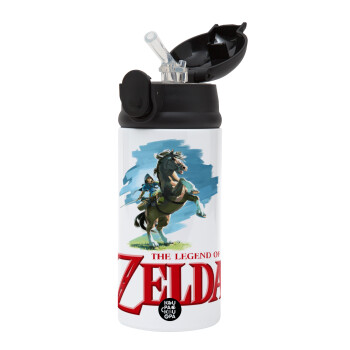 Zelda, Children's hot water bottle, stainless steel, with safety straw, Black (360ml) BPA-FREE