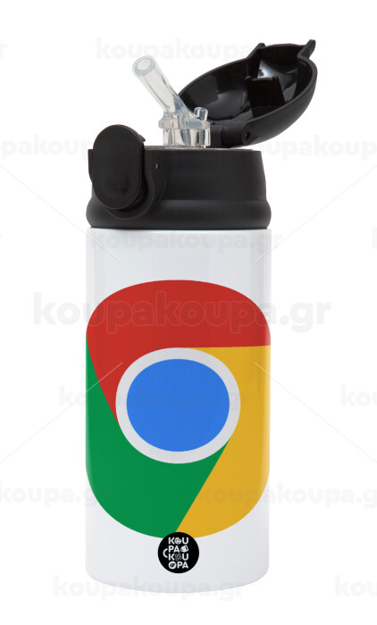 Chrome, Children's hot water bottle, stainless steel, with safety straw, Black (360ml) BPA-FREE