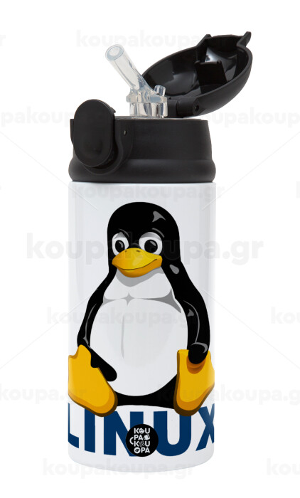 Linux, Children's hot water bottle, stainless steel, with safety straw, Black (360ml) BPA-FREE