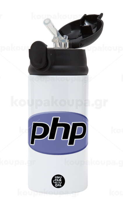 PHP, Children's hot water bottle, stainless steel, with safety straw, Black (360ml) BPA-FREE