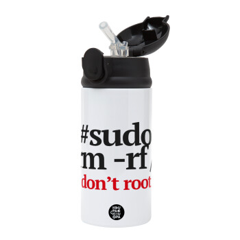 Sudo RM, Children's hot water bottle, stainless steel, with safety straw, Black (360ml) BPA-FREE