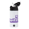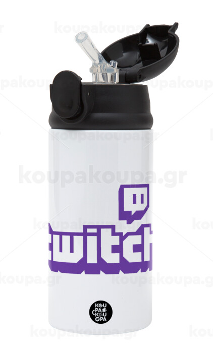 Twitch, Children's hot water bottle, stainless steel, with safety straw, Black (360ml) BPA-FREE