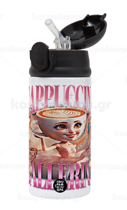 BALLERINA CAPUCHINA FUNK, Children's hot water bottle, stainless steel, with safety straw, Black (360ml) BPA-FREE