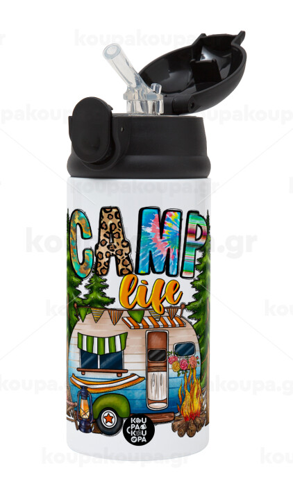 Camp Life, Children's hot water bottle, stainless steel, with safety straw, Black (360ml) BPA-FREE