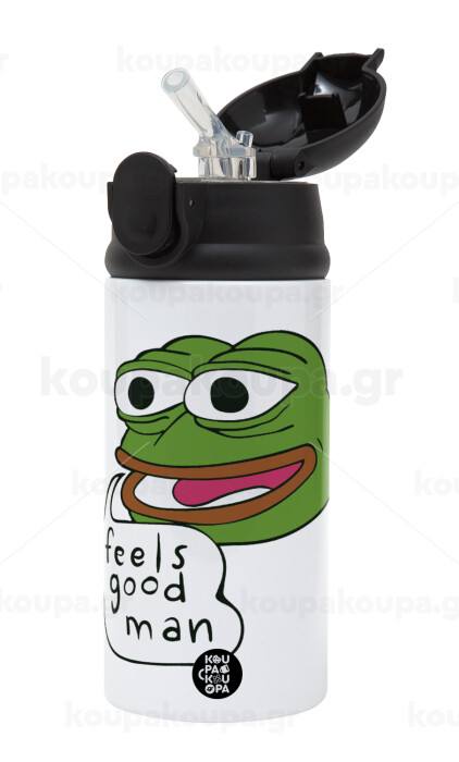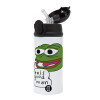 Pepe the frog, Children's hot water bottle, stainless steel, with safety straw, Black (360ml) BPA-FREE