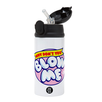 Why Don't You Blow Me Funny, Children's hot water bottle, stainless steel, with safety straw, Black (360ml) BPA-FREE