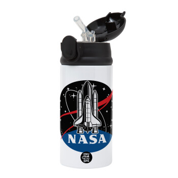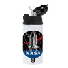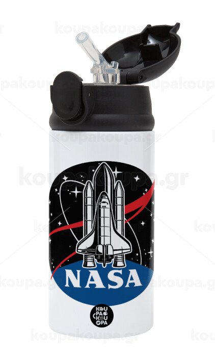 NASA Badge, Children's hot water bottle, stainless steel, with safety straw, Black (360ml) BPA-FREE