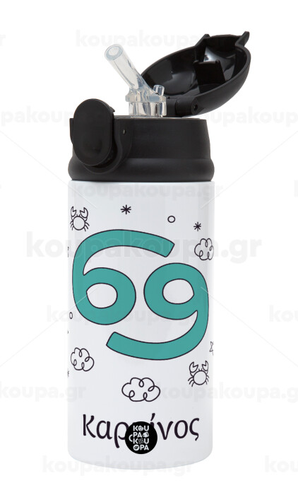Ζώδια Καρκίνος, Children's hot water bottle, stainless steel, with safety straw, Black (360ml) BPA-FREE