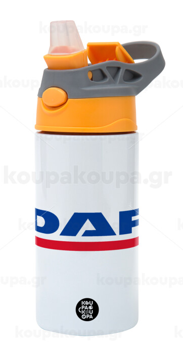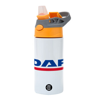 DAF, Children's hot water bottle, stainless steel, with safety straw, Orange/Grey (360ml) BPA-FREE