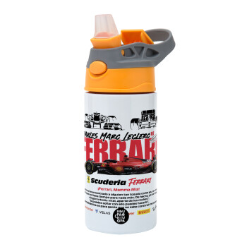 F1 Ferrari, Children's hot water bottle, stainless steel, with safety straw, Orange/Grey (360ml) BPA-FREE