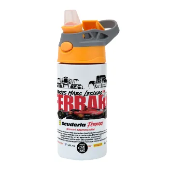 F1 Ferrari, Children's hot water bottle, stainless steel, with safety straw, Orange/Grey (360ml) BPA-FREE