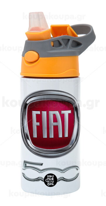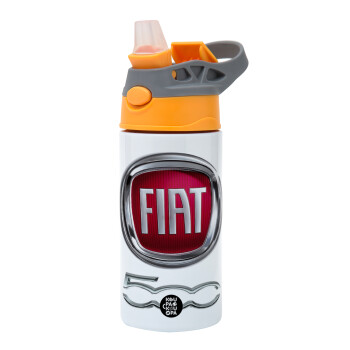 FIAT 500, Children's hot water bottle, stainless steel, with safety straw, Orange/Grey (360ml) BPA-FREE