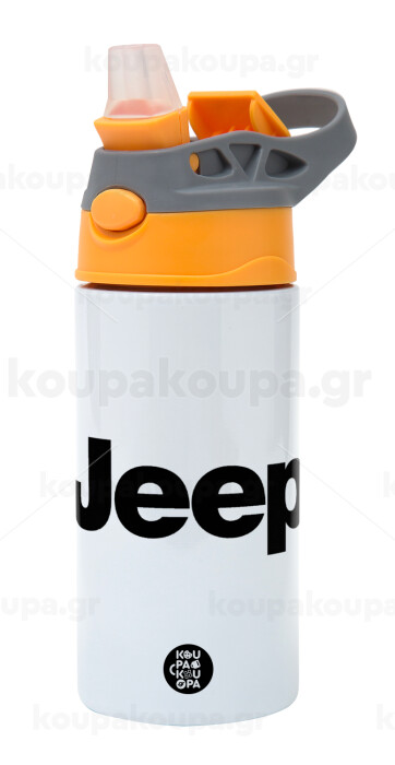 Jeep, Children's hot water bottle, stainless steel, with safety straw, Orange/Grey (360ml) BPA-FREE