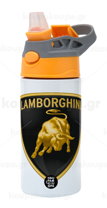 Lamborghini, Children's hot water bottle, stainless steel, with safety straw, Orange/Grey (360ml) BPA-FREE