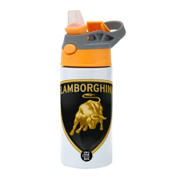 Lamborghini, Children's hot water bottle, stainless steel, with safety straw, Orange/Grey (360ml) BPA-FREE
