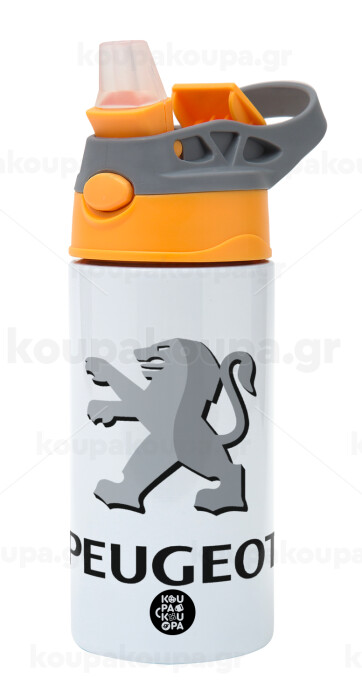 Peugeot, Children's hot water bottle, stainless steel, with safety straw, Orange/Grey (360ml) BPA-FREE