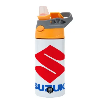 SUZUKI, Children's hot water bottle, stainless steel, with safety straw, Orange/Grey (360ml) BPA-FREE