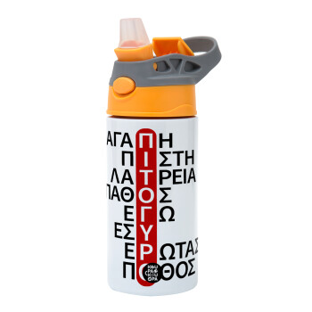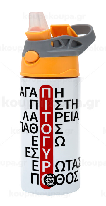 Πιτόγυρο πόθος, Children's hot water bottle, stainless steel, with safety straw, Orange/Grey (360ml) BPA-FREE