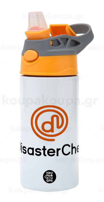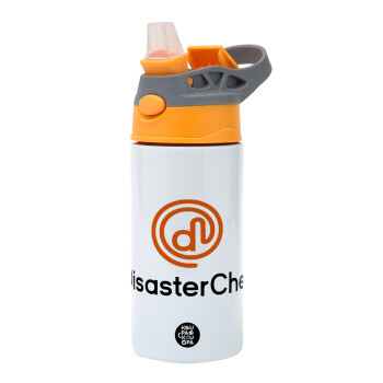 Disaster Chef, Children's hot water bottle, stainless steel, with safety straw, Orange/Grey (360ml) BPA-FREE