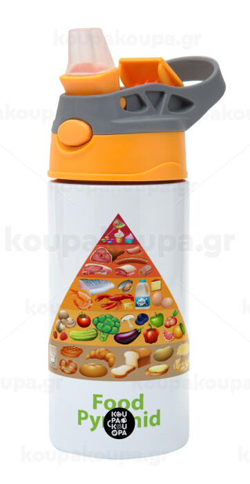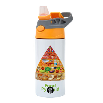 Food pyramid chart, Children's hot water bottle, stainless steel, with safety straw, Orange/Grey (360ml) BPA-FREE