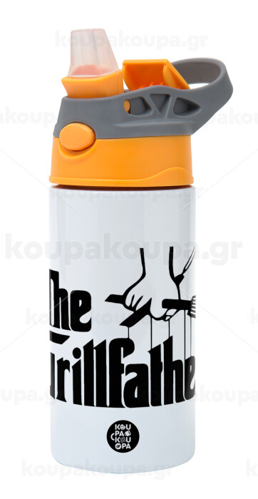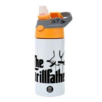 The Grillfather, Children's hot water bottle, stainless steel, with safety straw, Orange/Grey (360ml) BPA-FREE