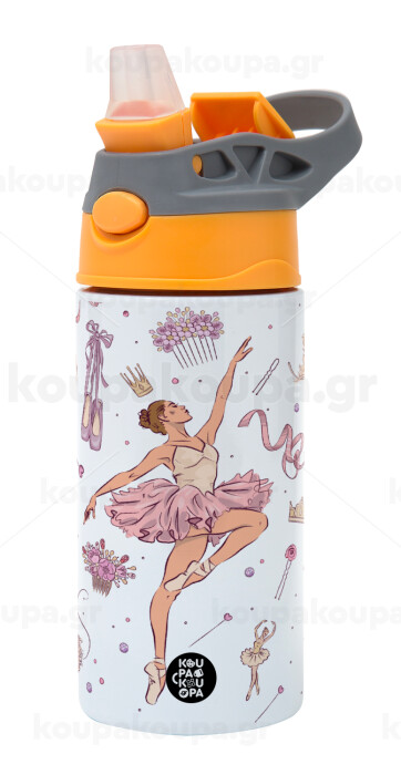 Ballet Dancer, Children's hot water bottle, stainless steel, with safety straw, Orange/Grey (360ml) BPA-FREE