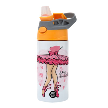 I Love Ballet, Children's hot water bottle, stainless steel, with safety straw, Orange/Grey (360ml) BPA-FREE