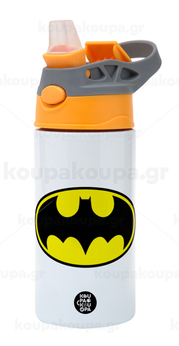 Batman, Children's hot water bottle, stainless steel, with safety straw, Orange/Grey (360ml) BPA-FREE
