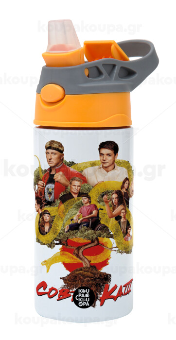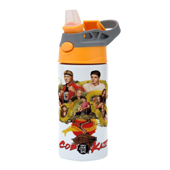 Cobra Kai tree, Children's hot water bottle, stainless steel, with safety straw, Orange/Grey (360ml) BPA-FREE