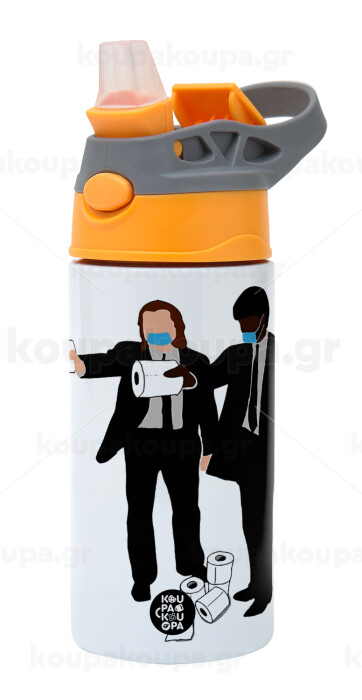 Pulp Fiction 3 meter away, Children's hot water bottle, stainless steel, with safety straw, Orange/Grey (360ml) BPA-FREE