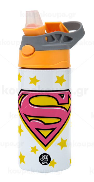 Superman Pink, Children's hot water bottle, stainless steel, with safety straw, Orange/Grey (360ml) BPA-FREE