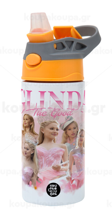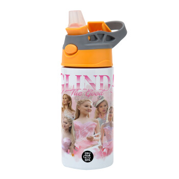 Wicked Glinda, Children's hot water bottle, stainless steel, with safety straw, Orange/Grey (360ml) BPA-FREE