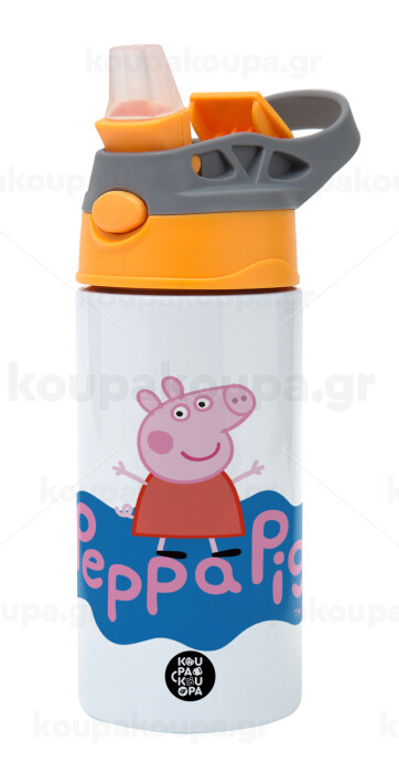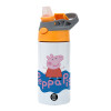 Πέππα το γουρουνάκι μπλε με όνομα, Children's hot water bottle, stainless steel, with safety straw, Orange/Grey (360ml) BPA-FREE