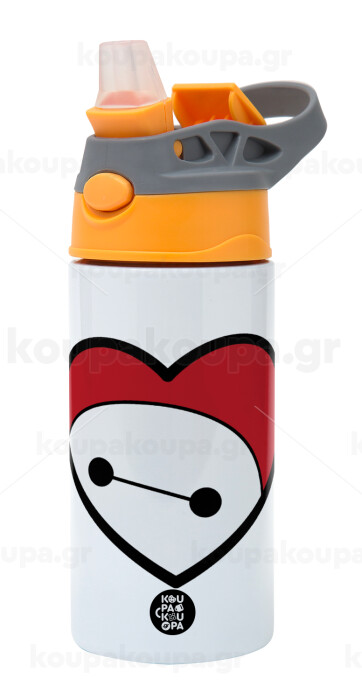 Baymax heart, Children's hot water bottle, stainless steel, with safety straw, Orange/Grey (360ml) BPA-FREE