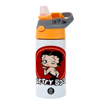 Betty Boop kiss, Children's hot water bottle, stainless steel, with safety straw, Orange/Grey (360ml) BPA-FREE